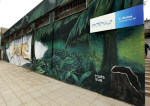La obra que ahora viste la fachada de ingreso estuvo a cargo del artista Ezequiel Briseño, parte de MURO SUR. Los vecinos ayudaron a elegir el diseño, que pasa a ser parte de su barrio. El mural logra reflejar la energía de un gran Yaguareté, una especie que se encuentra en peligro de extinción y fue declarada Monumento Natural de la Argentina.
