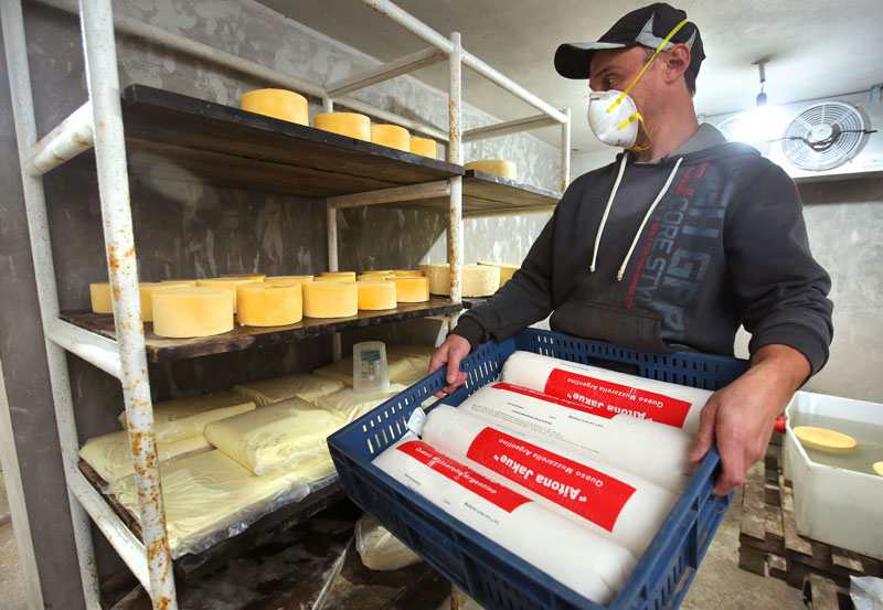 Todos los días, los 365 días del año, Iván y sus hermanos -la cuarta generación- producen queso que sirve como materia prima para panaderías, fábrica de pastas, confiterías y comercios de la zona que trabajan con productos Aitona Jakue, su marca.
