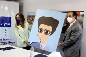 Durante la firma del convenio, Blanco entregó a la directora de AySA, Malena Galmarini, un cuadro de la ingeniera Elisa Bachofen, “símbolo de las mujeres pioneras en el ámbito de la ingeniería argentina”.